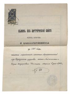 Выписка из метрической книги о бракосочетавшихся за 1904 год, № 80, выданная причтом Михайло -Архангельской города Иркутска церкви жене Лейтенанта Софии Федоровне Колчак.
