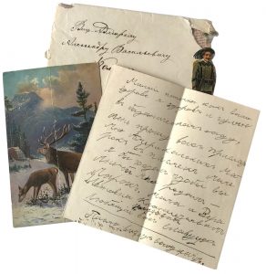 Lettre manuscrite à son père, l'amiral Koltchak, avec un émouvant cadeau.