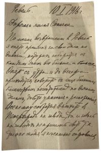 Lettre manuscrite à son épouse Sophie Koltchak et à son fils, 10 janvier 1916, Reval, 2 f., encre noire.