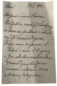 Lettre manuscrite à son épouse Sophie Koltchak, 23 février 1916, 2 f., encre noire.