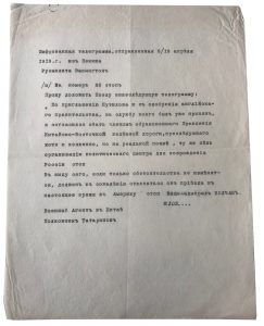 « […] Весьма доверительное и совершенно личное сообщение намечается соединение в совещании ряда русских людей общественного дела находящихся заграницей для обсуждения и быть может организации политического центра на который могло бы опираться повелительно необходимое движение к национальному восстановлению России ».