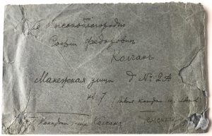 Enveloppe verte avec un sceau de cire aux initiales d'Alexandre Koltchak, adressée à Sofia Fedorovna Koltchak.