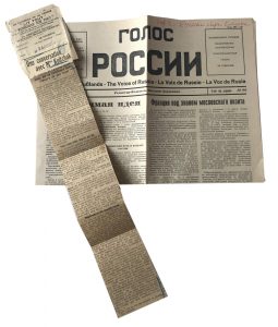 к лоту прилагается : Вырезка из газеты Le courrier de la presse "Lit tout" "Renseigne sur tout », от 9 августа 1919 года, Интервью с Софьей Колчак