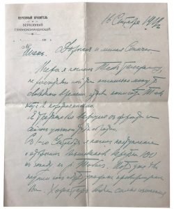 Я третьего дня вернулся с фронта и сейчас уезжаю туда обратно. С 1-ого Сентября я начал наступление и отбросил большевиков верст на 100 к западу […] Вот уже 2 недели, как идут упорные кровопролитные бои.
