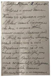 Lettre manuscrite adressée à Sophie Koltchak et son fils du cuirassé «Sibirsky Strelok», 12 avril 1916, encre noire, 2 f., 4 p.