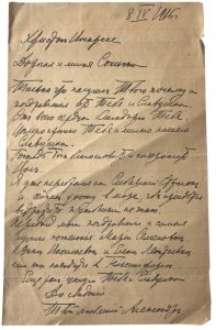 Lettre adressée à Sophie Koltchak, le jour de Paques 1916, encre noire, 2 f., 1 p.