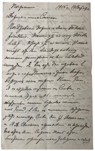 Lettre manuscrite adressée à Sophie Koltchak du cuirassé «Pogranichnik», 13 septembre 1915, encre noire, 2 f., 4 p.