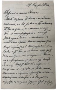 Lettre manuscrite adressée à Sophie Koltchak du cuirassé «Rurick», 24 août 1914, encre noire, 2 f., 2 p.
