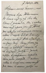 Lettre manuscrite adressée à Sophie Koltchak et son fils du cuirassé «Rurick», 7 octobre 1914, encre noire, 2 f., 4 p.