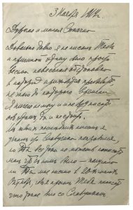 Lettre manuscrite adressée à Sophie Koltchak et son fils du cuirassé «Rurick», 3 novembre 1914, encre noire, 2 f., 3 p.