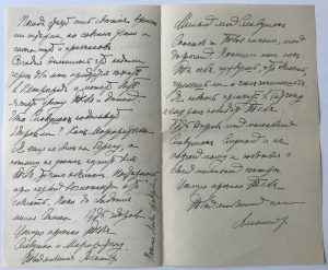 Рукописное письмо к супруге Софье Колчак и сыну Ростиславу с крейсера « Рюрик », 26 ноября 1914, черные чернила, 2 листа, 3 страницы