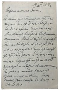 Lettre manuscrite adressée à Sophie Koltchak et son fils du cuirassé «Rurick», 16 décembre 1914, encre noire, 2 f., 4 p.