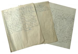 Trois manuscrits: I. notices au tuteur de son fils, 1 p. II. Lettre à Marie Constantinovna dans laquelle elle propose un remède contre ses maux, 1 p. III. Réflexions oniriques, 1 p.