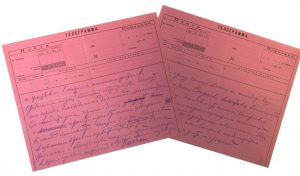 Две телеграммы (черновик) на розовой бумаге