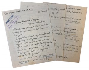 Lettres manuscrites du 25 septembre 1927 et du 12 octobre au vice-amiral Posokhov le remerciant pour son aide, 3p. et 2 p.