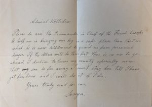 Записка Софии Колчак, адресованная Адмиралу Колчаку, английский язык, черные чернила.
