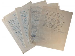 11 f. manuscrits, à l'encre bleue, de poèmes, vers 1925.