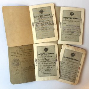 On y joint 4 passeports de Zinaida Alexandrona Sadovskaya, d'Olga Pétrovna Pétrova et de Maria Gavrilovna Sokologorskaya avec une photographie d'identité.
