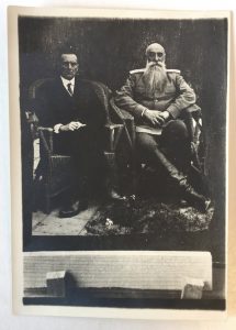 PHOTOGRAPHIE, retirage, du vice-amiral Alexandre KOLTCHAK en civil au côté du lieutenant-général Dimitri KHORVAT prise à Harbin. 9 x 6,4 cm.