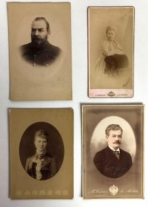 Ансамбль из 4 фотографий, около 1900, на которых изображены: Графиня Алина Корфф, Наталия Штандтман,Федор Сокольский, Александр Харитонов