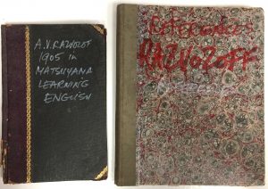 Тетрадь с заметками по английской грамматике 1905, с таблицами неправильных глаголов, около 23 листов. К лоту прилагается книга с заметками Развозова