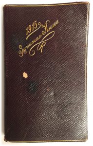 Carnet almanach avec des notes manuscrites pour l'année 1915. Contient de précieux commentaires sur les manoeuvres dans la mer Baltique.