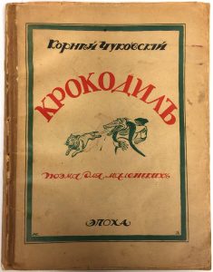 Les aventures de Crocodile Crocodiliévitch, poème pour les petits, dessins Ré-Mi, Saint-Pétersbourg, Berlin, Epokha, 1922, 54 p. Dos renforcé et quelques déchirures. E. O.