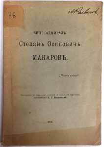 Le vice-amiral Stépan Ossipovitch Makarov, Saint-Pétersbourg, Smirnov, 1913, 43 p., 1 ill. Ex-libris manuscrit d'A. Pasvozov.