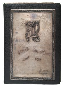 Папка для документов, кожа, серебро, монограмма Александра Развозова « На память от офицеров Усурий ца 19.XI.14 Ней берг. Тихомиров »