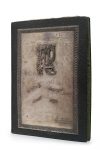 Porte-documents en cuir recouvert d'une plaque en argent ciselé ornée du monogramme du commandant Alexandre Razvozov offert, comme l'indique l'inscription, «En souvenir des officier de l'Ousourietz le 19.XI.14». Intérieur recouvert de soie moirée verte.