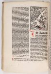 Grand bois gravé et encadré représentant la cruxifiction au 1er feuillet et 53 bois gravés in texte, des enluminures de peinture rouge aux initiales tout au long de l'ouvrage -