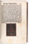 Texte en latin, caractères gothiques, encadré d'1 mince filet rouge, quelques initiales gravées, 1 figure gravée sur bois in texte - 1er feuillet sali, quasi détaché et annotations anciennes à l'encre brune en marges, très petite déchirure en marge sans perte au 4ème feuillet, très petite déchirure avec infime perte en marge inférieure du feuillet chiffré 20, petite tache en marge latérale du feuillet chiffré 38, annotations et soulignements anciens à l'encre brune ou noire à 16 pages, déchirures sans perte en marge inférieure des feuillets chiffrés 81 et 82, déchirure latérale sans perte aux feuillets chiffrés 83 à 86 et coupures latérales dont 4 avec perte de marge sans affecter le texte aux feuillets chiffrés 87 à 96, 1 petite tache d'encre au recto du feuillet chiffré 121, petite auréole en marge supérieure des feuillets chiffrés 17 à 28, dernier feuillet légèrement roussi -