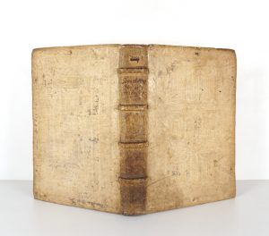 Belle reliure de l'époque en peau de truie richement estampée à froid avec large décor composé de multiples filets et roulettes (de très rares trous de ver, légèrement salie et frottée par endroit) - Dos à nerfs titré à l'encre et orné à froid (uniformément assombri, 1 nerf partiellement frotté) -