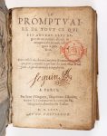 [ANONYME] - Le promptuaire de ce qui est advenu plus digne de mémoire, depuis la création du monde juques à present - Paris ; Jean d'Ongoys, 1575 - 1 volume In-18° - [28] feuillets, 368 pages mal chiffrées 378 (page 90 chiffrée 100 et à suivre) -