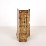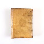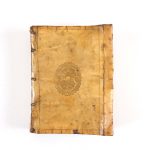 Reliure de l'époque vélin souple ivoire à recouvrement (sali, froissé et quelques très petits manques, 1ère garde refaite) - Plats ornés d'1 guirlande centrale à froid dorée et encadrés d'1 filet à froid - Dos lisse (quelque peu enfoncé) orné de petits fers dorés et titré à l'encre - Tranches dorées -
