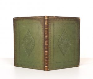 Reliure début XIXème siècle veau vert estampillée à froid avec roulettes d'encadrement et ornementation centrale, petits fleurons dorés aux angles (1 petit trou de ver en bas du 2nd mors, 2 coins frottés) - Roulette aux coupes - Dos à nerfs titré or, orné à froid et aux petits fers dorés (uniformément assombri) -