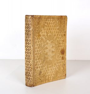 Reliure de l'époque vélin ivoire richement ornée de fleurs de lys, de têtes d'anges aux angles, d'1 guirlande aux centre des plats et encadrée d'1 triple filet (plats légèrement tachés et 2 petits travaux de ver superficiels au 2nd) - Traces de lacets - Dos lisse fleurdelisé et orné de filets dorés aux coiffes - Tranches dorées -