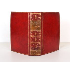 Belle reliure XVIIIème siècle maroquin rouge (coins frottés, 1 tout petit trou de ver au 1er mors) - Plats encadrés d'1 triple filet doré - Filet aux coupes - Dentelle intérieure - Dos lisse richement orné de caissons, filets et fleurons dorés - Pièces de titre maroquin havane, mention de l'imprimeur et date - Tranches dorées -