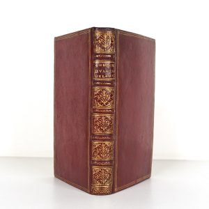Reliure de l'époque maroquin rouge - Plats encadrés d'1 triple filet doré avec petits fleurons angulaires - Roulette aux coupes - Dentelle intérieure - Dos à nerfs orné et titré or -