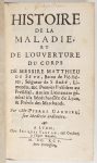 Petit ouvrage peu courant dans lequel l'auteur, médecin du défunt, relate la maladie puis l'autopsie de son patient.