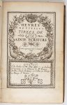 SENAULT (Louis) - Heures nouvelles tirées de la Sainte Ecriture - Paris ; Chez l'auteur, Claude de Hansy, sans date [vers 1680] - 1 volume In-8° - [4] pages blanches avec encadrement manuscrit doré, titre gravé, 260 pages (des erreurs de...