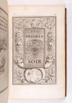 Célèbre livre d'heures gravé, considéré comme un chef-d'ouvre des arts décoratifs et l'un des sommets du livre orné français. Le maître d'écriture Louis Senault en dessina et grava au burin le texte et les ornements décorant chaque page : guirlandes de fleurs, calligraphies au trait de plume, lettres ornées, etc.