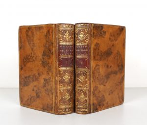 Reliure de l'époque veau have marbré (1 coin usé) - Plats encadrés d'1 triple filet doré avec petits fleurons dorés aux angles - Filet aux coupes - Roulette intérieure - Dos lisses orné - Pièces de titre et de tomaison maroquin bordeaux - Tranches marbrées -