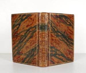 Belle reliure de l'époque veau porphyre - Triple filet encadrant les plats - Roulette aux coupes et aux contre plats - Dos lisse orné (1 petit accroc en coiffe supérieure) - Pièce de titre maroquin vert - Gardes de papier bleu -Tranches dorées -