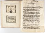 puis : Objections de Rousseau contre la religion chrétienne, etc. etc. - Nombreux assignats d'époque contre collés in et hors texte - Ce mansucrit se termine par 13 feuillets manuscrits dépliants de la même écriture et d'1 feuillet manuscrit avec assignat contre collé -