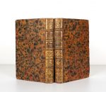 Reliure de l'époque basane havane mouchetée (des coins usés) - Dos à nerfs ornés (coiffes légèrement frottées) - Pièces de titre et de tomaison maroquin havane - Tranches bleues mouchetées -