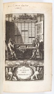 Elle est illustrée d'un joli frontispice représentant 2 amateurs étudiant des médailles devant 1 grand médaillier ouvert et d'1 bandeau figurant les bustes en médaillon d'Auguste et de Louis XIV, gravés par Franz Ertinger.