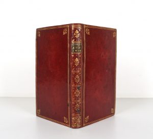 Reliure de l'époque maroquin rouge (quelques taches brunes aux plats) - Plats encadrés d'1 triple filet doré et orné de fleurons angulaires - Filet aux coupes - Dentelle intérieure - Contre plats et gardes de papier dominoté - Dos lisse orné de filets et de fleurons dorés (1 petit trou, quelques taches brunes) - Pièce de titre maroquin vert - Tranches dorées -