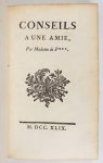 [PUISIEUX (Madeleine d'Arsant de)] - Conseils à une amie, par Madame de P*** - Sans lieu [Paris] ; Sans nom, 1749 - 1 volume In-8° - xix, 194 pages -