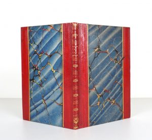 Reliure début XIXème maroquin rouge à bandes estampées de roulettes à froid - Dos lisse titré or orné de filets et de fleurons dorés (coiffes très légèrement frottées) -